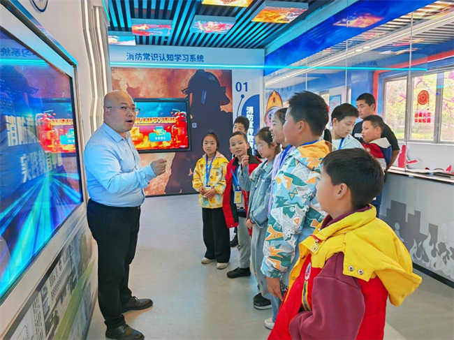 消防科技产教融合实践教育中心内,工作人员结合实物模型与模拟场景,通俗易懂地讲解火灾预防、逃生自救等安全知识,孩子们踊跃参与烟雾逃生、灭火器实操、火警电话模拟拨打等实践环节,在亲手操作中掌握实用安全技能,安全防范意识和应急处置能力得到有效提升。10岁的陶欣怡、9岁的曹翊禾纷纷分享体验感悟,不仅学会了遇事沉着冷静,更由衷敬佩消防员的英勇与伟大。