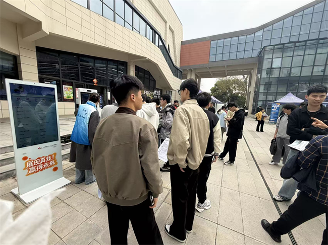 招聘会现场,安徽中显智能机器人有限公司、无锡中微爱芯电子有限公司合肥分公司、安徽灿能电力技术服务有限公司等企业负责人详细介绍了企业发展前景、岗位任职要求、薪资福利体系和职业发展路径,中船鹏力(南京)塑造科技有限公司等部分企业还开展了专场宣讲和现场面试。学生处、相关学院有关负责同志和毕业班辅导员深入招聘现场,与用人单位交流人才需求、指导毕业生现场求职。学生就业大使、志愿者全程参与会场布置和引导服务,保障活动有序进行。活动现场还与“就业桥”合作创新设置了AI求职赋能区,配备了就业赋能、简历、面试、生涯探索四台智能终端,可为毕业生提供就业简历打印、简历优化、模拟面试、生涯规划等全流程一站式就业服务,全方位助力学生提升求职能力。