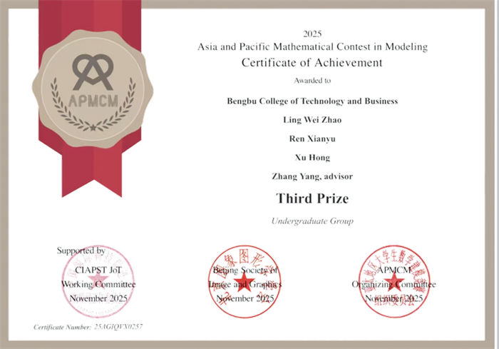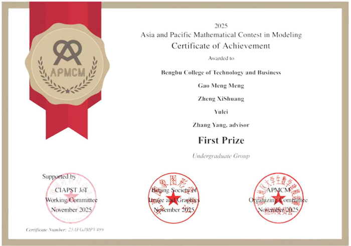 蚌埠工商学院学子在2025年APMCM亚太地区大学生数学建模竞赛中斩获佳绩