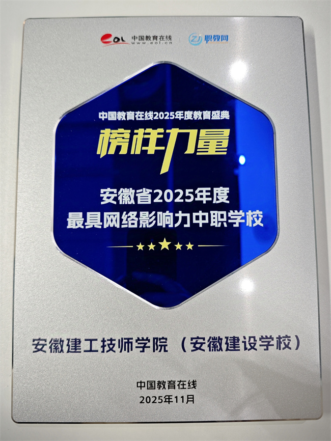 安徽建工技师学院荣获“安徽省2025年度最具网络影响力中职学校”