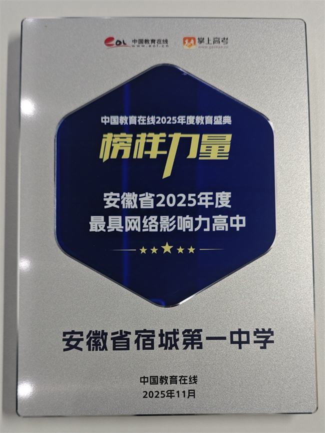 安徽省宿城第一中学荣获“安徽省2025年度最具网络影响力高中”