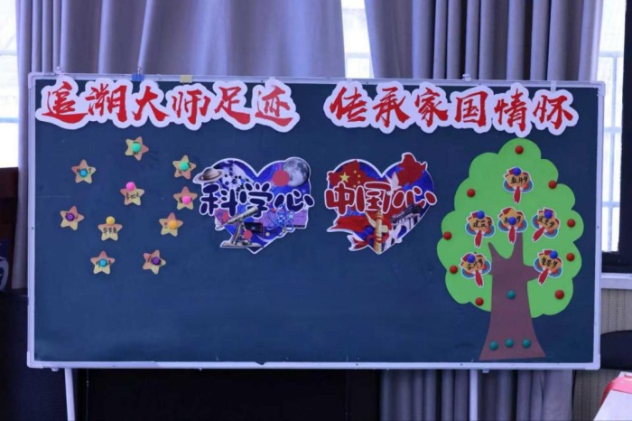 现场互动热烈,掌声不断,在思想的碰撞中,家国情怀与科学精神的种子已悄然植根于队员们的心田。御风小队的队员们带来了小合唱《国家》,悠扬的旋律配合整齐的手语动作,唱出了国与家之间不可分割的深情,将会场的氛围推向了一个感人至深的高点。此次活动的板书设计也成为整场队会的视觉灵魂,将“追溯”与“传承”的主题具象化、情感化。