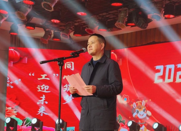 黄国平在贺词中代表学院党委向全体师生、向长期以来关心和支持学院发展的各级领导和社会各界朋友送上了诚挚的感谢和新春祝福。他强调,2025年是“十四五”规划圆满收官的决胜之年,更是学院全体师生凝心聚力、捷报频传的奋进之年。在集团党委的坚强领导下,在上级各主管部门的关心指导和大力支持下,同心协力,踔厉奋进,在党建引领、品牌建设、技能竞赛、学生管理、教育教学等方面取得了显著成绩。他表示,展望新的一年,学院将开启“十五五”的崭新征程,携手并肩、奋勇争先,以昂扬姿态奔赴新程,以实干精神铸就辉煌!