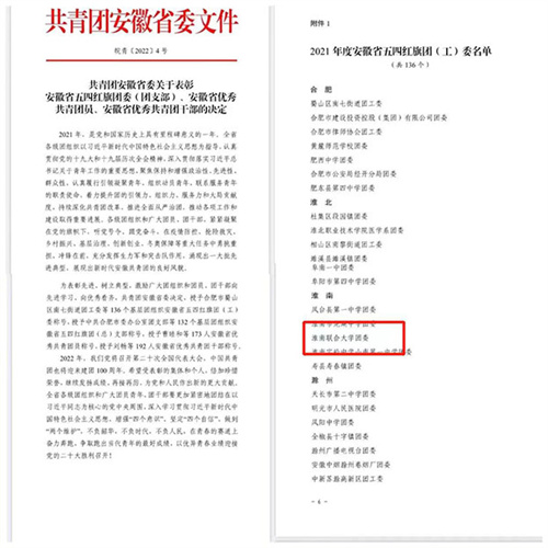 淮南联合大学团委喜获“安徽省五四红旗团委”荣誉称号