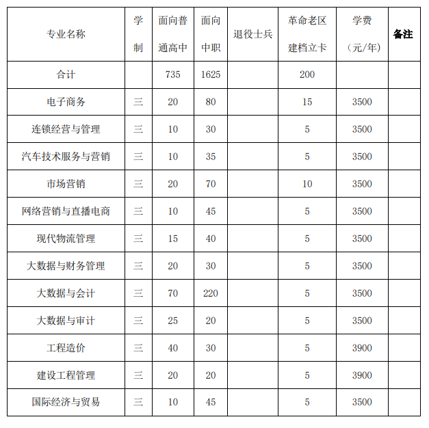 安徽工商职业学院 2023 年高职院校分类考试招生计划