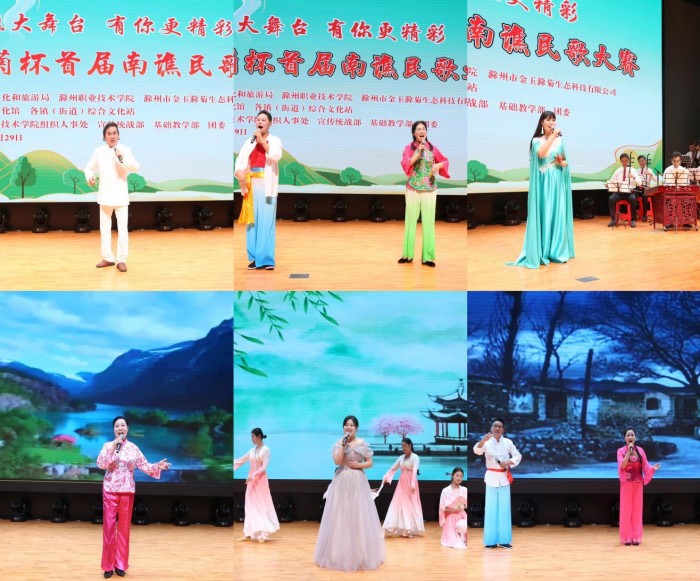 南谯民歌作为安徽省非物质文化遗产的代表性项目,是植根于滁州南谯地区的传统音乐瑰宝,承载着地方的红色历史与劳动人民的真挚情感。9 月 29 日下午,“金玉滁菊杯” 首届南谯民歌大赛在滁州职业技术学院举行。大赛由该校联合南谯区文化和旅游局、滁州市金玉滁菊生态科技有限公司主办,该校组织人事处、宣传统战部、基础教学部及团委协办。滁州职业技术学院、滁州市文旅局、南谯区委宣传部等单位负责人出席活动。本次大赛汇聚了全区各镇(街道)及高校的23支代表队同台竞技,大赛设置一等奖1项、二等奖2项、三等奖3项。经过激烈角逐,滁州职业技术学院青年美育教师张菡喆荣获一等奖。