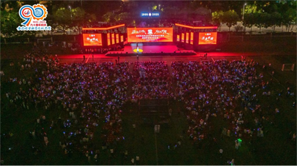 九秩鎏光耀机电,青春向党启新程。10月25日晚,“鎏光九秩 机电新程”安徽机电职业技术学院建校90周年暨迎新生艺术思政课在学校田径运动场举行。学校领导,兄弟院校领导教师,企业代表,校友代表,学校全体中层干部,教师代表以及安徽商贸职业技术学院师生代表等近六千名师生欢聚一堂,共襄盛典。此外,还有397158人次通过图片直播在线观看了艺术思政课,在艺术的浸润中回望奋斗历程,凝聚前行力量。