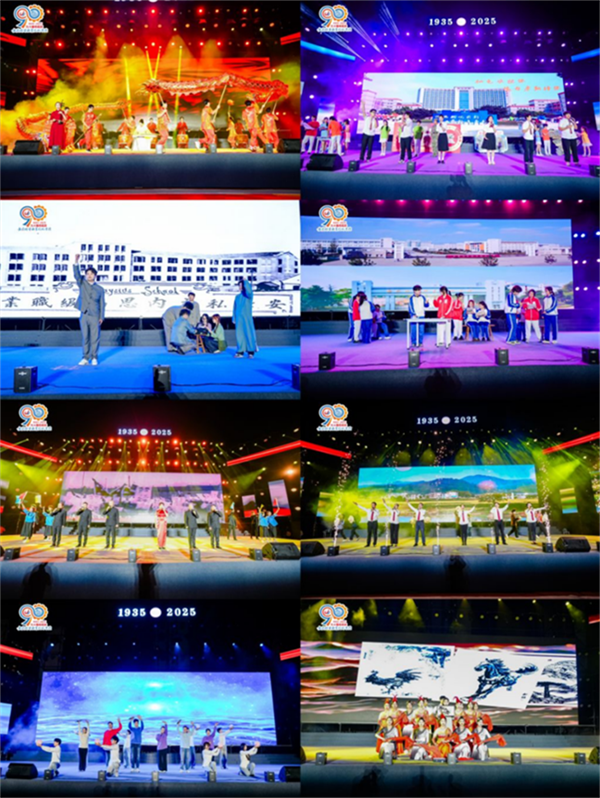 第二篇章“笃行·匠心育人”更是精彩纷呈。少数民族舞蹈《皖疆同心 舞韵校庆》舞出了民族团结的动人赞歌;《丝路华韵 匠心传承》以青春舞步讲述丝路故事,展现了新生代机电人的朝气与担当;古筝合奏《盛世国乐 筝鸣机电》用传统器乐奏响了校企合作单位对学校九十华诞的深情祝福;辅导员歌舞《九秩风华 师舞追梦》展现了育人队伍的多才多艺与使命担当。