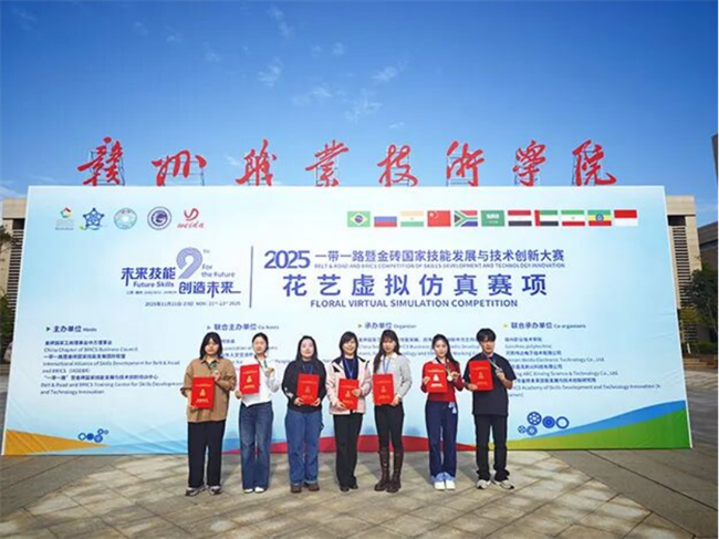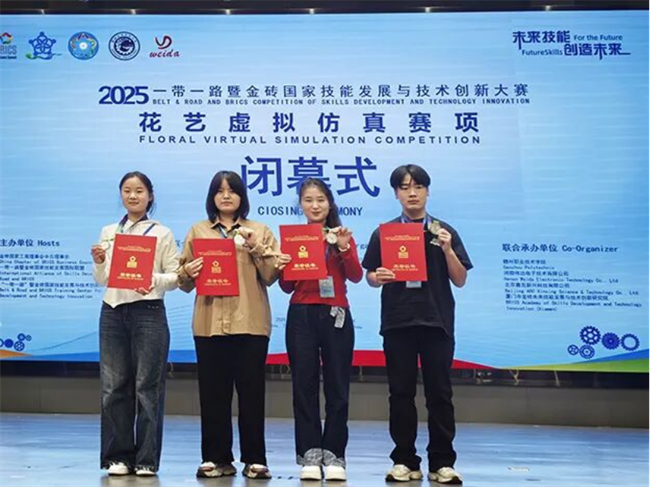 淮南联合大学在2025年一带一路暨金砖国家技能发展与技术创新大赛(花艺虚拟仿真赛项)中喜获二等奖两项