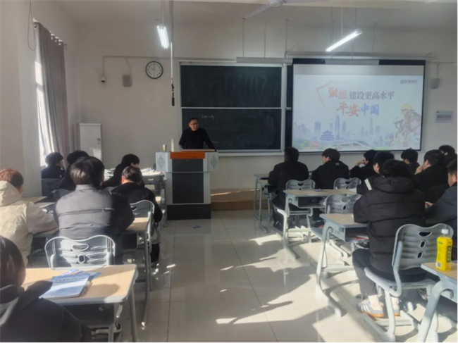 省督导专员、校党委书记马哲锐以《聚焦建设更高水平平安中国》为题授课,紧扣党的二十届四中全会核心要义,结合当前复杂多变的国际国内形势,系统剖析了平安中国建设的重要战略意义、明确目标任务与科学实现路径。授课过程中,马书记引用大量详实数据与典型案例,将宏大叙事与个体关联紧密结合,让学生深刻认识到平安中国建设与每个人的生活息息相关,引导大家从自身做起,主动参与平安建设,为构建和谐稳定的社会环境添砖加瓦。同时,他着重强调,青年学子要深入学习实践党的二十届四中全会精神,在求学过程中锤炼过硬本领,努力成长为德才兼备的时代新人。