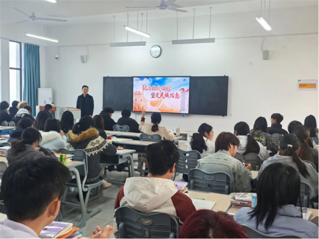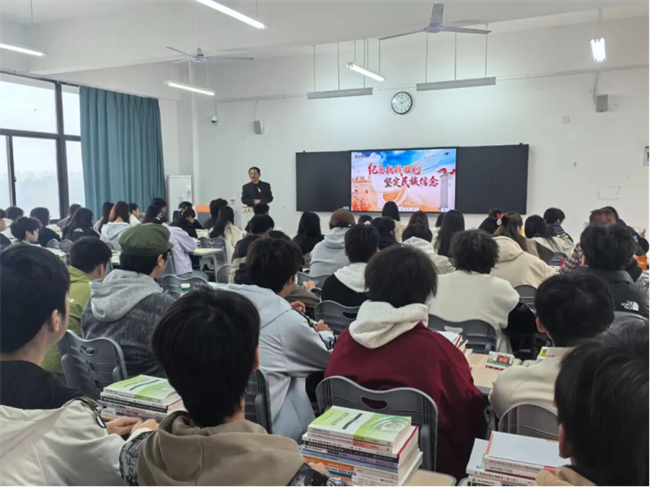 校长李柱梁围绕《纪念抗战胜利坚定民族信念》主题,将抗战历史与党的二十届四中全会精神有机融合。他以抗战胜利的伟大历史意义为切入点,深入阐释了全会中关于坚定文化自信、弘扬民族精神的重要论述,通过讲述抗战时期无数英雄儿女挺身而出、保家卫国的英勇事迹,带领学生重温那段艰苦卓绝的峥嵘岁月,激发了全体学生强烈的爱国情怀与民族自豪感。李校长在授课中指出,思政课不仅是传授理论知识的课堂,更是塑造灵魂、培育品德、引领价值观的重要殿堂,希望学生们珍惜韶华、勤学善思,不断提升综合素质,不负时代重托。