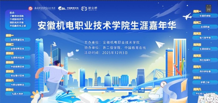 12月3日,安徽机电职业技术学院生涯嘉年华活动在安徽机电职业技术学院开展,现场以七大模块、八大闯关环节为核心,将职业规划知识融入趣味互动,吸引众多学子踊跃参与,在轻松愉悦的氛围中完成自我探索与职业认知,为未来发展明晰方向。