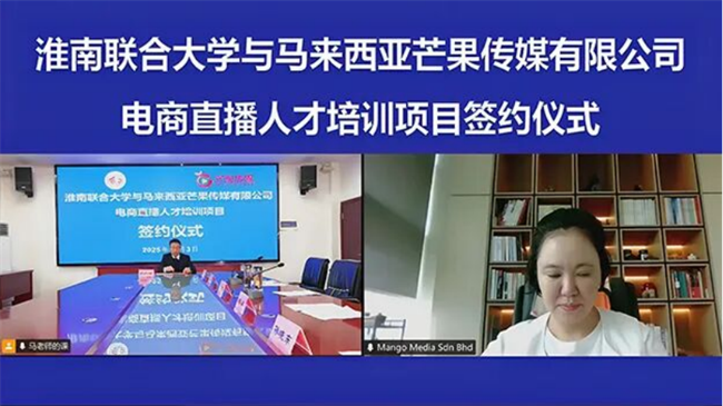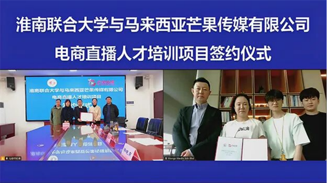 淮南联合大学与马来西亚芒果传媒有限公司举行电商直播人才培训项目线上签约仪式
