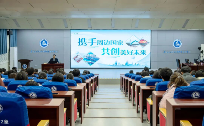 12月10日,安徽水利水电职业技术学院党委副书记、院长方贤文以“携手周边国家,共创美好未来”为主题,为电子信息工程学院150余名学生代表讲授思政课。
