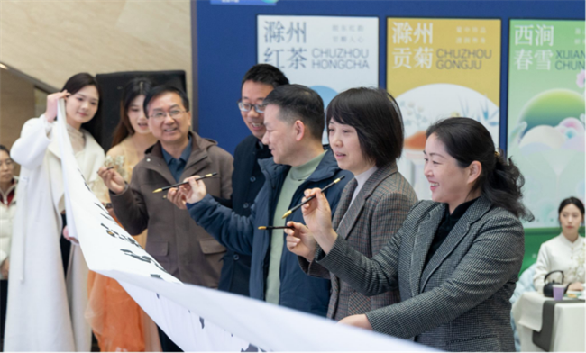 上午9时30分,滁州市博物馆一楼大厅内宾客云集。滁州职业技术学院党委书记陈飏,滁州市文化和旅游局局长、琅琊山风景名胜区党工委书记、管委会主任王连侠,滁州市委宣传部副部长赵文霞,滁州市亭城文化旅游投资集团有限公司总经理张何何,滁州市博物馆馆长陈磊,滁州职业技术学院领导李平权、李超、王冬、王宇等出席开幕式。南谯区文化和旅游局、琅琊区文化和旅游局、安徽滁州职业教育集团、琅琊区文化馆、南谯区农业农村局、南谯区融媒体中心、滁州广播电视报社、南谯乡村投资发展有限公司、南谯谯丰文化传媒有限公司、凤凰数媒(北京)科技有限公司、南京豆果文化发展有限公司、安徽正合雅聚新材料科技有限公司、滁州博康模具塑料有限公司、滁州资城孵化器管理有限公司等有关单位领导,以及学校各教学院部、各部门相关负责同志参加开幕式。