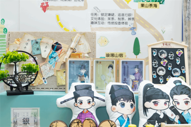 展区中央聚焦滁州市两区优质文化旅游资源,深度挖掘文化内涵、创新拓展旅游体验,推动区域文旅高质量发展。其中,对接南谯区文化和旅游局的需求,深度合作推进的系列文旅融合项目——“星漫江淮·一起来数小星星”“谜游江淮·诗笺寻踪”重磅展出。二者围绕滁州江淮分水岭风景道1号线核心景点,提出创新自驾游玩法策划。“星漫江淮·一起来数小星星”提案将“集星打卡”互动融入游览线路,通过集齐“星星”,获得纪念品、优惠券等奖励的方式,增强游览的趣味性,引导游客深入体验沿线自然与文化资源,提升参与度与停留时长。“谜游江淮·诗笺寻踪”则以欧阳修文稿丢失为故事背景,以南谯文旅IP“南小文”“谯小旅”为召集者,通过建立数字人,使用数字投影技术,引导游客在各个景点体验非遗、品尝特产、进行文化互动和探索解谜,实现旅游动线规划与在地资源活化的结合,打造地区首个大型沉浸式亲子文化探秘剧本游。滁州花博园、南谯蓝莓和琅琊古道银杏打卡点等展位的开放式互动引来众多观者参与体验,人气爆棚。