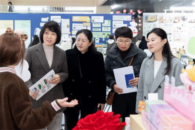 期间,滁州职业技术学院党委副书记、校长许雪峰教授到场观展指导,同与会领导漫步展厅,参观各展位,悉心聆听作品创意,与学生亲切交流,并给出建议和肯定。