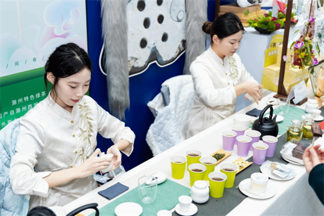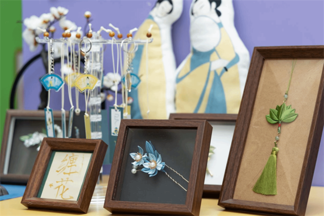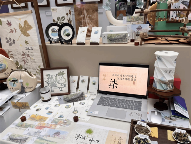 根植于地方文化,策划新生活品牌。“亭城二十四”展位将中国二十四节气色彩美学与古法草木染技艺深度融合,以滁州当地172种自然与人文元素为基础,提取出87个最具地方特质的符号体系,以二十四节气为色彩脉络,精心制作二十四景不同的草木染作品,每一件作品都承载着时节流转与在地风物。“环滁丝韵”提炼滁州地域文化精髓,使用非遗缠花技艺,选取山形轮廓、亭台飞檐、云雾线条等滁州美景小品,制作系列伴手礼。展位前设立缠花现场教学体验区,观展者频频驻足、热烈互动。