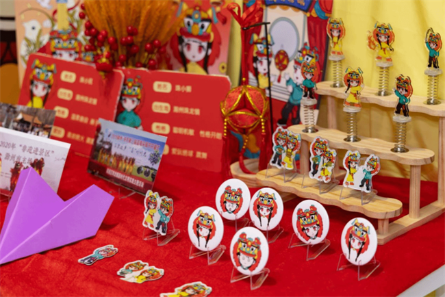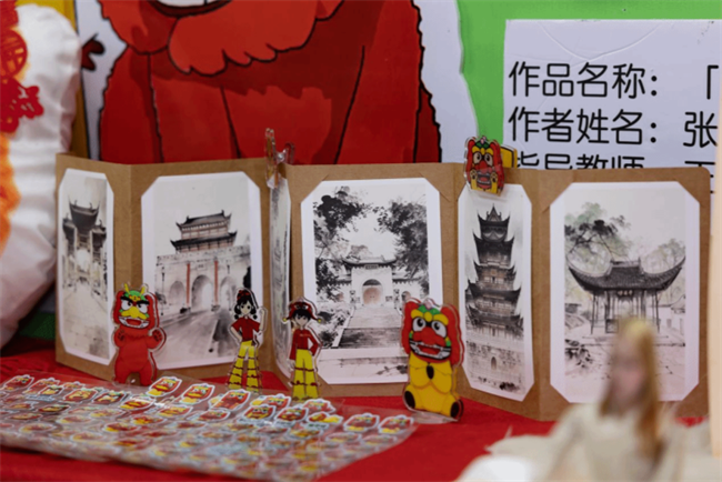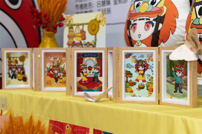 非遗展区以“让传统在数字时代活起来”为旨,实现传统文化从“静态展示”到“动态参与”的转变,为非遗传播提供年轻化、数字化的新范式。“九狮一犼”非遗活化,用十余幅生动插画,细腻描绘狮子守护、嬉戏、舞动等多重形态,巧妙串联南谯大地上的自然风貌与深厚的民间舞狮传统;《福运传承》创新融合二维动画与传统剪纸艺术,细腻呈现祖孙日常与福运传承的坚守,以“福字倒贴”的经典传说,讲述文化的代代相传,勾勒出民俗与温情;《双条鼓响·潮启非遗》提取拨浪鼓、传统服饰纹样等非遗符号,重塑凤阳花鼓文化传播路径,作品融合“非遗+科技”,打造线上动态数字藏品与线下智能文创周边。既保留非遗文化的情感内核,又通过科技手段打破场景边界。