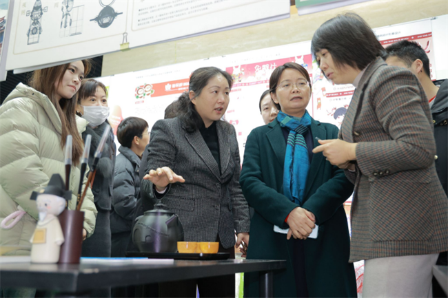 同时,学校管理学院、食品与环境工程学院的学生们还带来了茶艺展示、文创糕点品尝、花艺体验等环节;商学院学子助力展览全程直播,使展览真正实现从内容到形式全方位的“数智赋能”。