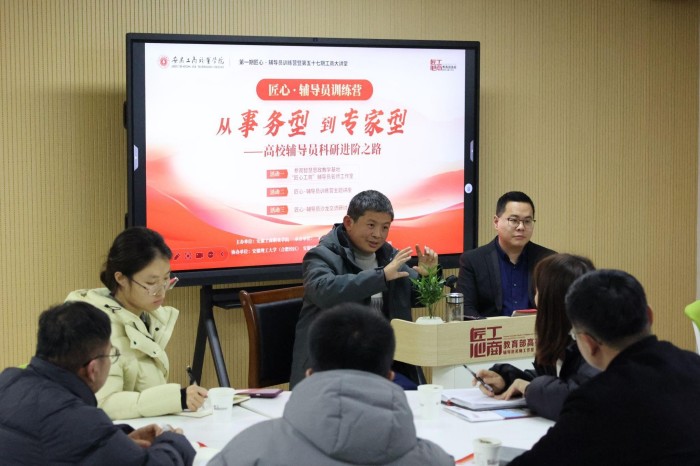 在随后的辅导员沙龙研讨环节中,辅导员代表齐聚学校“匠心工商”辅导员名师工作室,围绕“科研能力提升”“工作室机制建设”以及“学生管理创新”等议题,结合各自工作中的实践与困惑,与主讲专家刘灿展开了对话。与会人员就“如何从日常工作中提炼科研课题”“工作室如何实现可持续运行与跨校联动”“学生职业规划与学业发展的系统性引导路径”等具体问题踊跃提问,刘灿结合自身理论研究与实践经验,逐一进行了深入细致的回应,并提出了若干具有可操作性的建议。该环节既强化了培训的互动性与实效性,也进一步激发了辅导员们向研究型、专家型发展的内在动力,充分彰显了跨校交流平台对于推动辅导员队伍专业化建设的现实意义与长远价值。