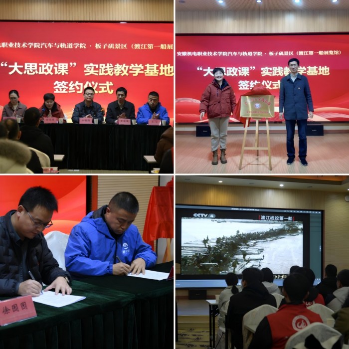 为深化教育强国三年行动计划立德树人机制综合改革试点建设,12月24日,安徽机电职业技术学院组织部分教职工及学生入党积极分子代表,赴渡江第一船展览馆开展“红色教育润初心 立德树人担使命”主题党日活动,并成功举行“思政育人实践基地”共建签约揭牌仪式。