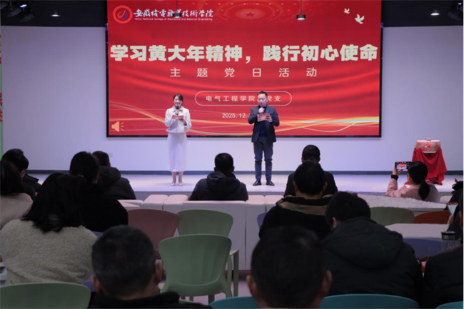 2025年12月31日,安徽机电职业技术学院在大学生活动中心组织开展“学习黄大年精神,践行初心使命”主题党日暨黄大年式教师团队创建示范活动。安徽机电职业技术学院党委委员、副院长段贤勇,第四批“全国高校黄大年式教师团队”创建成员及部分教职工齐聚一堂,共悟初心使命。