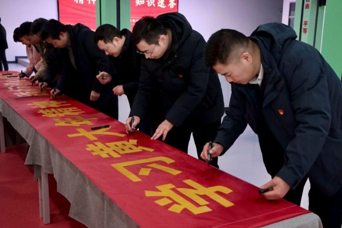 活动最后,“使命践行”承诺签名环节,与会人员在“学习黄大年精神,践行初心使命”主题横幅上郑重签名,以笔墨践行初心承诺。