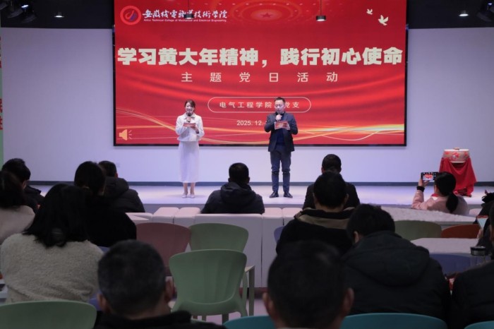 2025年12月31日,安徽机电职业技术学院在大学生活动中心组织开展“学习黄大年精神,践行初心使命”主题党日暨黄大年式教师团队创建示范活动。学校党委委员、副院长段贤勇,第四批“全国高校黄大年式教师团队”创建成员及部分教职工齐聚一堂,共悟初心使命。
