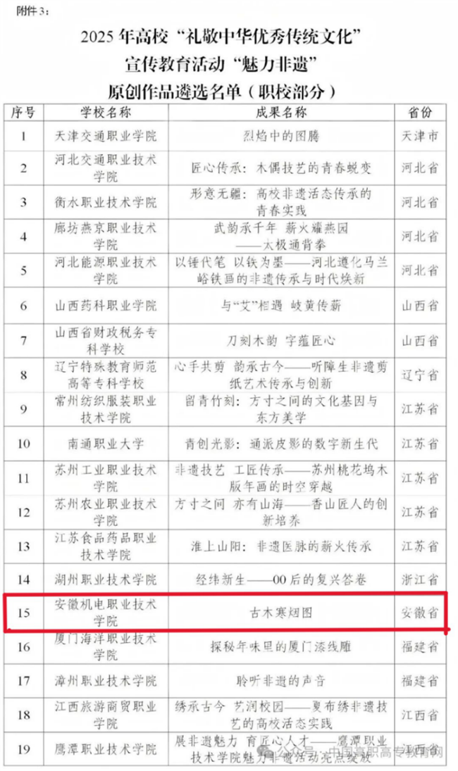 高校赋能非遗活态传承——安徽机电职业技术学院作品入选2025年高校“礼敬中华优秀传统文化”宣传教育活动