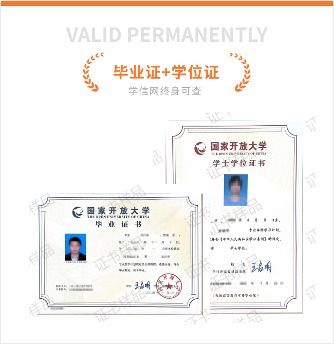 实行学分制,学籍自注册入学起八年内有效。根据教育部有关要求,本科、专科专业最短学习年限为两年半。符合毕业要求的,颁发国家承认的专科或本科学历毕业证书,教育部给予毕业证书电子注册。国家开放大学开放教育本、专科毕业证书可在教育部唯一学历证书查询网站—中国高等教育学生信息网(www.chsi.com.cn)查询。本科(专科起点)学生符合条件可在毕业前按规定申请国家开放大学学位。证书展示如下。