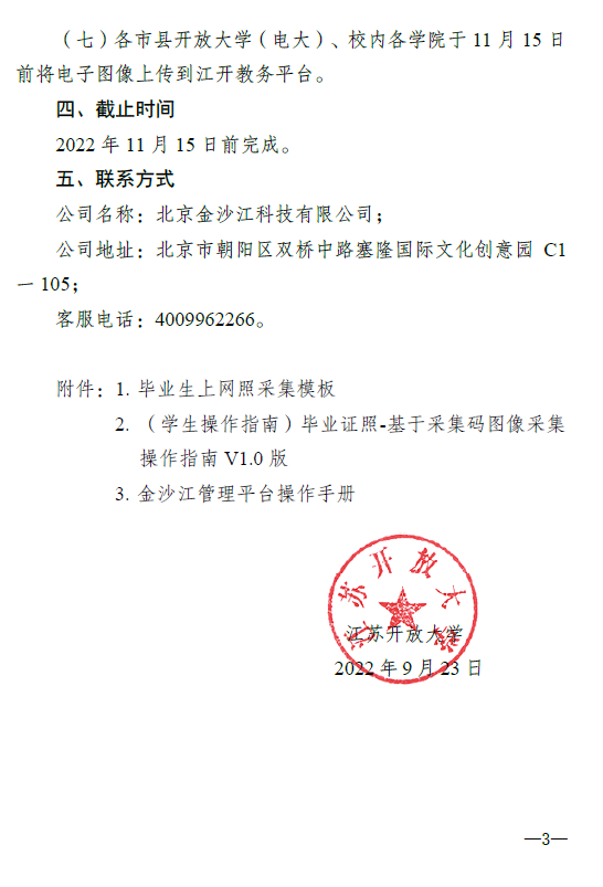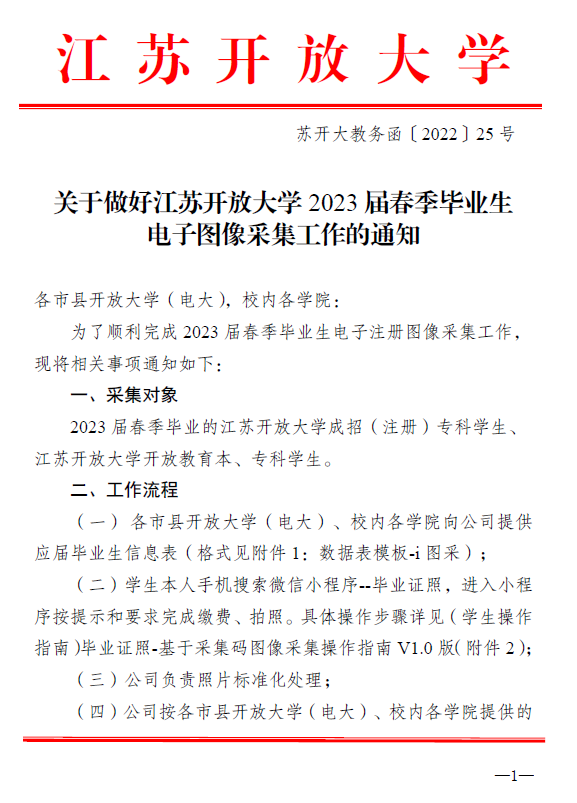 关于做好江苏开放大学2023届春季毕业生电子图像采集工作的通知