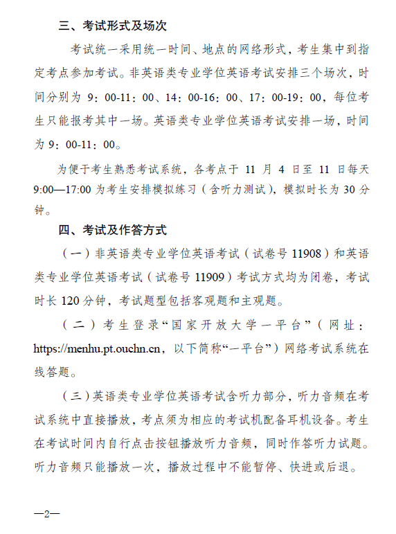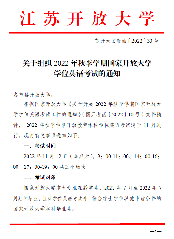 关于组织2022年秋季学期国家开放大学学位英语考试的通知