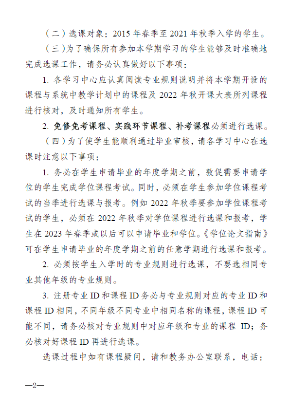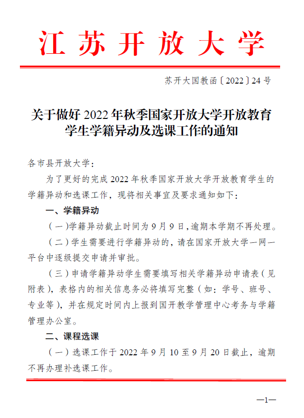 关于做好2022年秋季国家开放大学开放教育学生学籍异动及选课工作的通知
