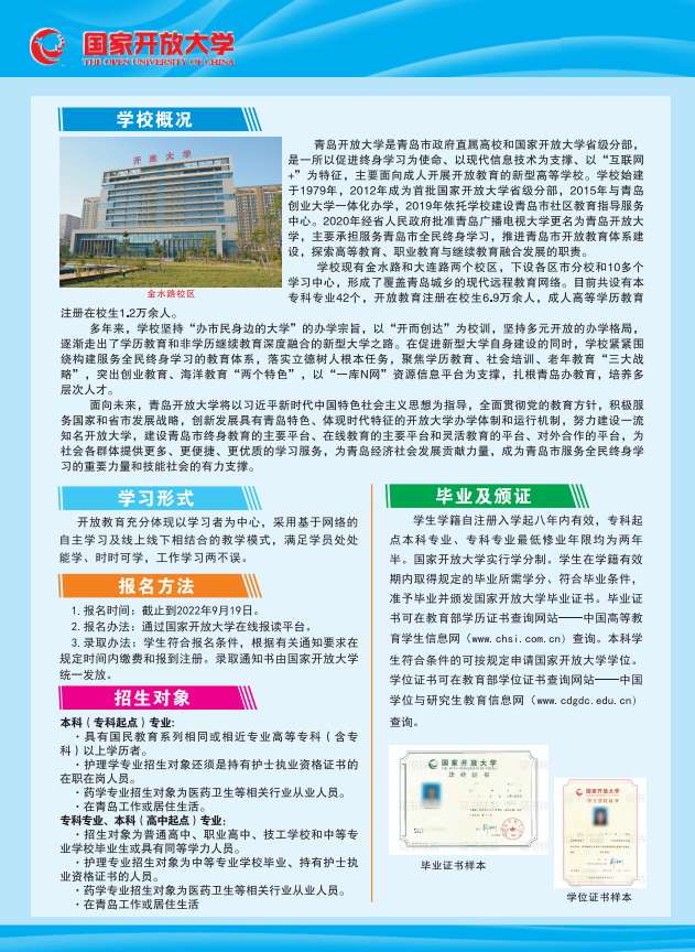 青岛开放大学(胶州分校)2022年秋季开放教育招生简章