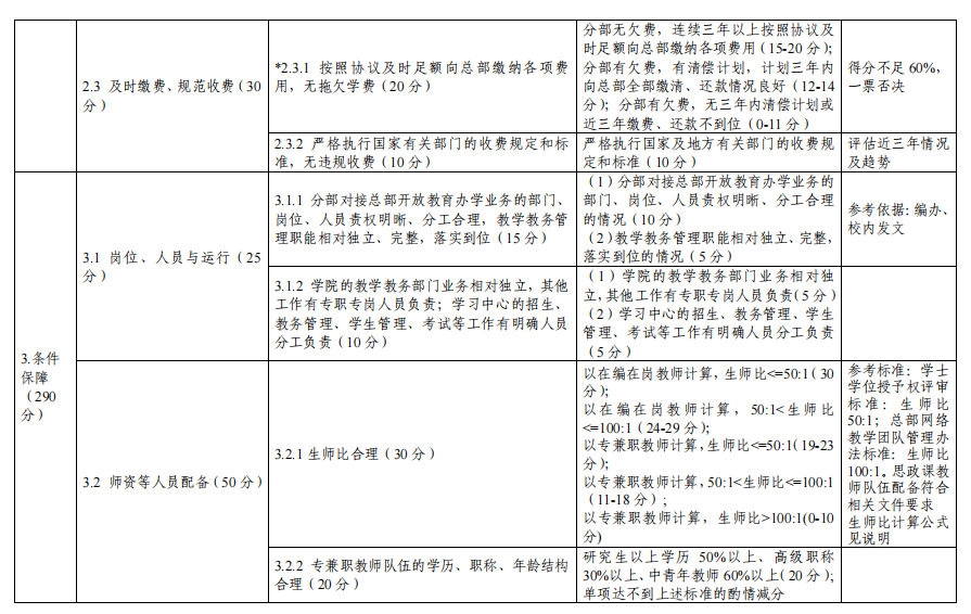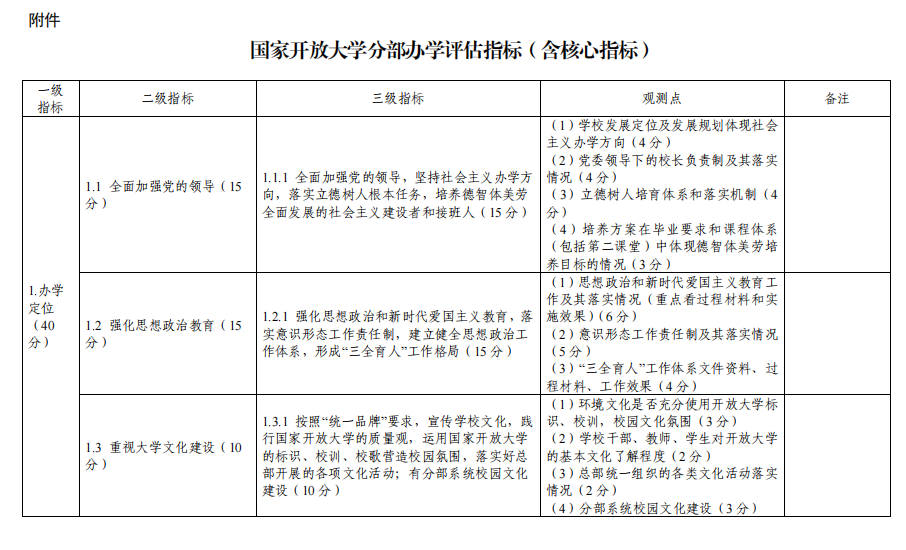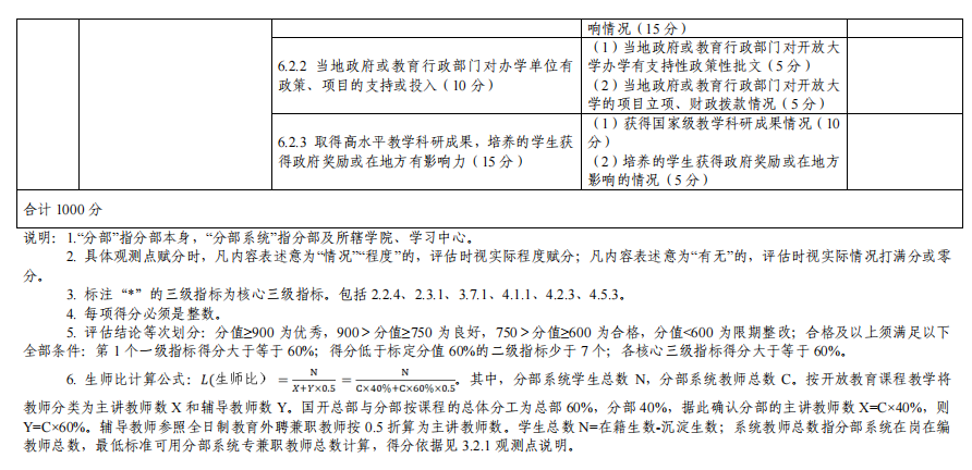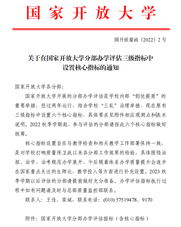 关于在国家开放大学分部办学评估三级指标中设置核心指标的通知