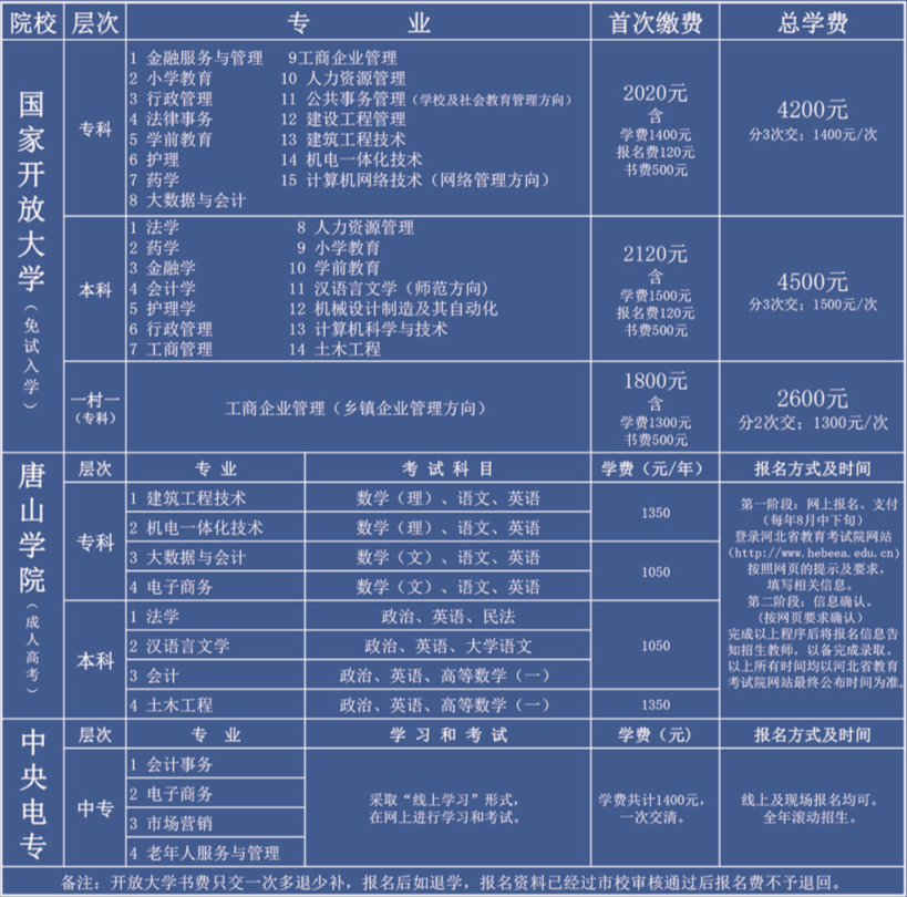 专、本科:每年分春、秋两季招生(具体时间拨打咨询电话或咨询招生教师)。