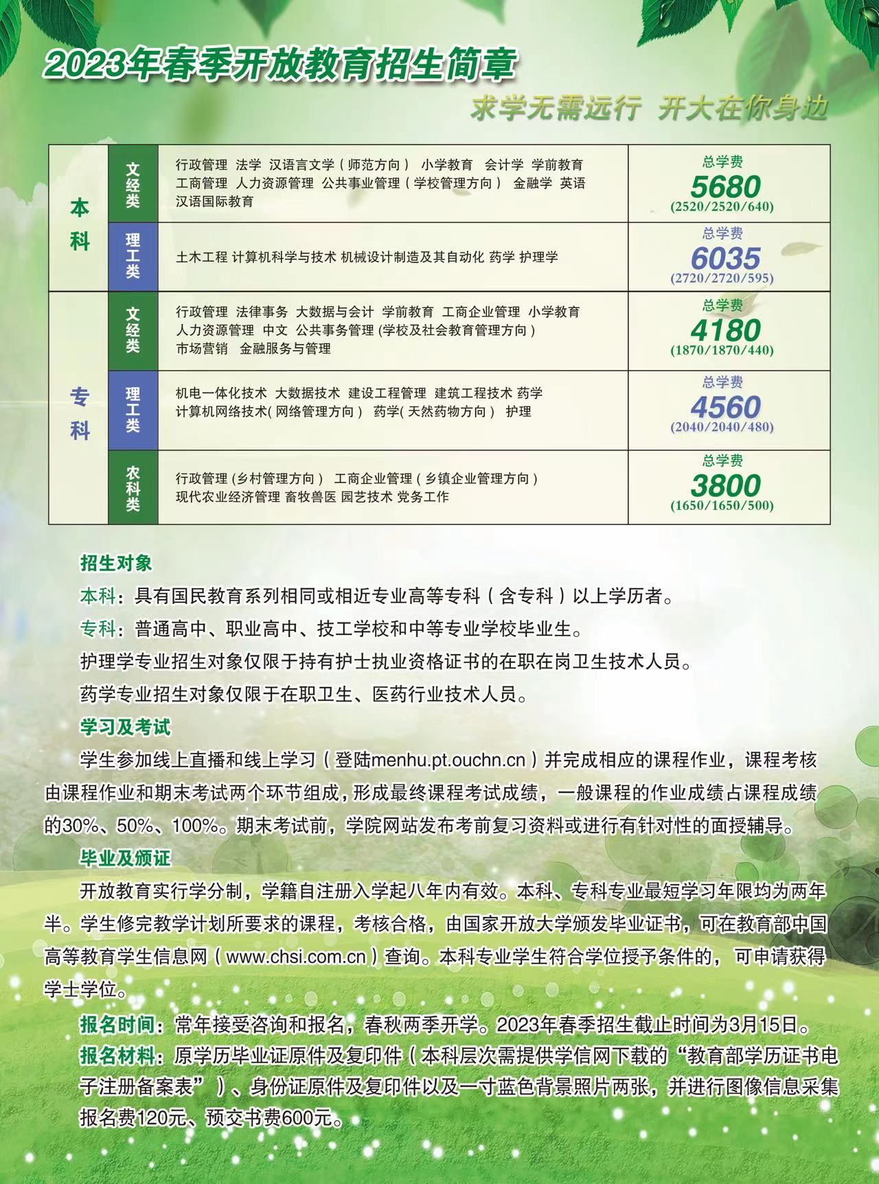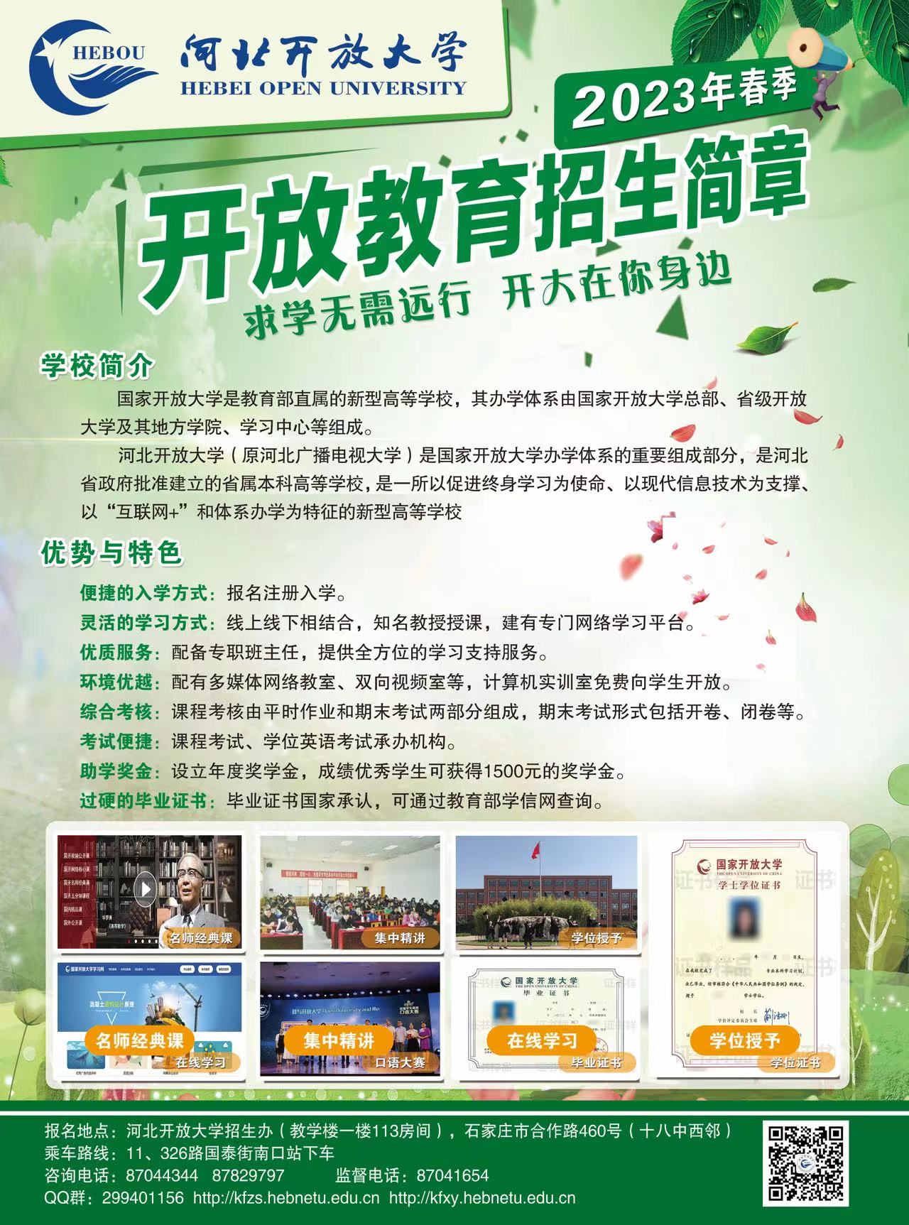 河北开放大学(鹿泉分校)2023年春季学期开放教育招生简章