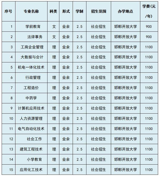 邯郸开放大学(邯山分校)高等学历继续教育2022招生简章