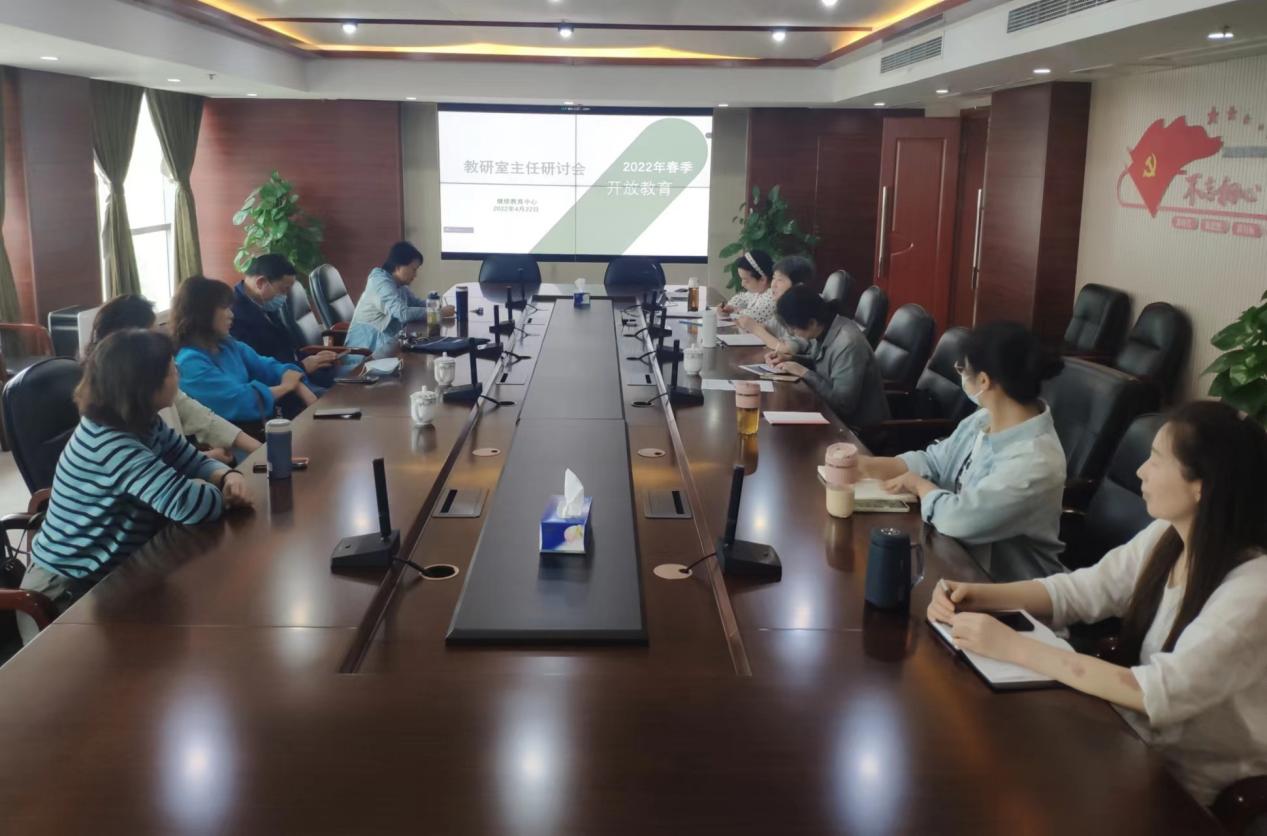 为部署我校开放教育2022年春季学期教学工作,研讨各重点教学环节,推进迎评工作,4月22日下午,我校在新街口校区组织开放教育教研室负责人召开教学专题研讨会。
