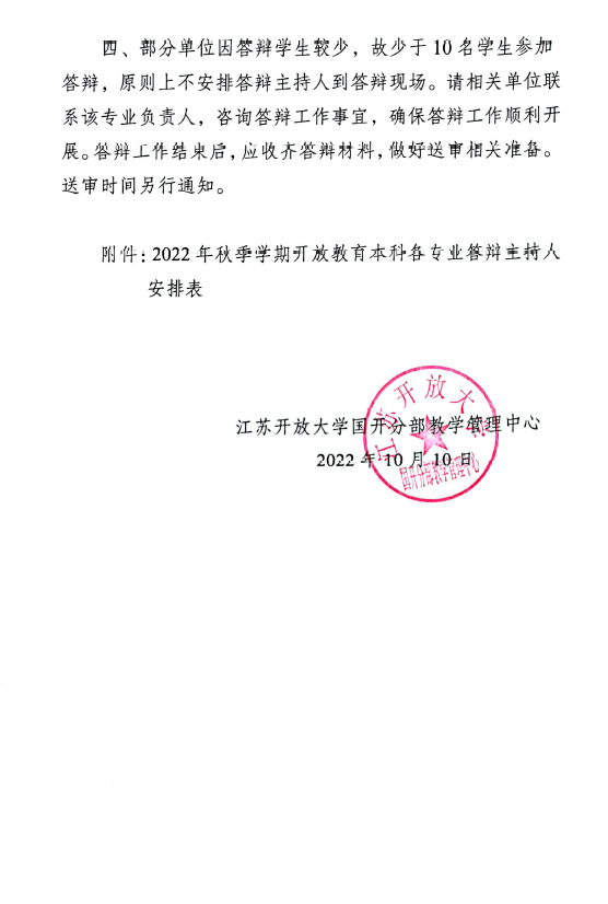 关于公布2022年秋季学期国家开放大学江苏分部开放教育本科各专业答辩主持人安排的通知