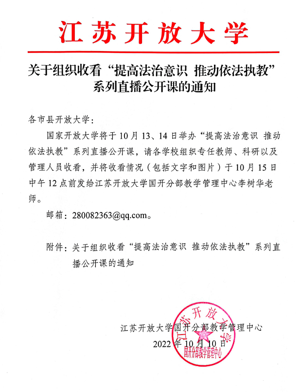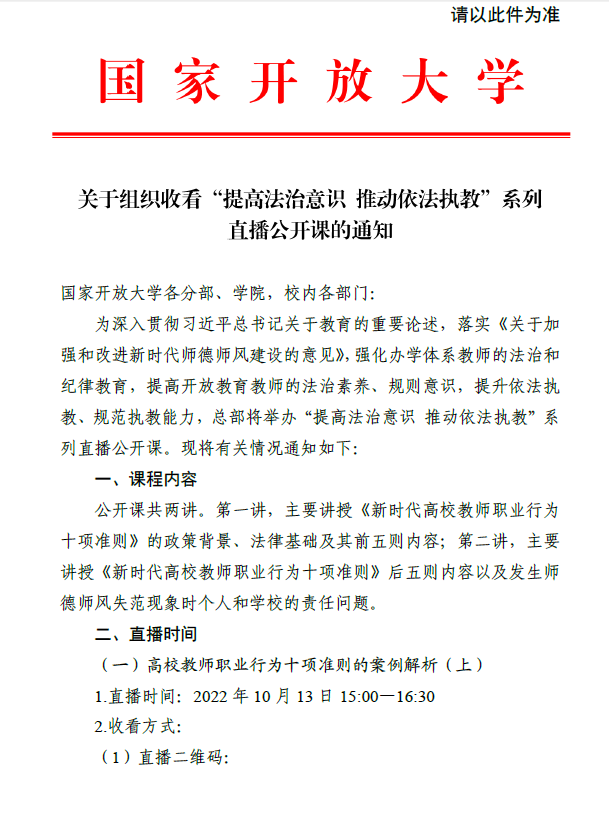 关于组织收看“提高法治意识 推动依法执教”系列直播公开课的通知