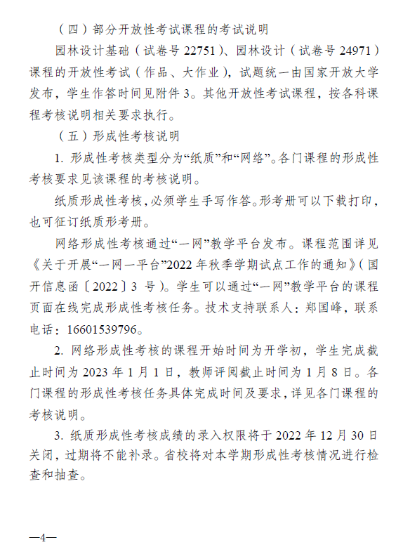 关于2022年秋季学期国家开放大学开放教育期末考试安排的通知