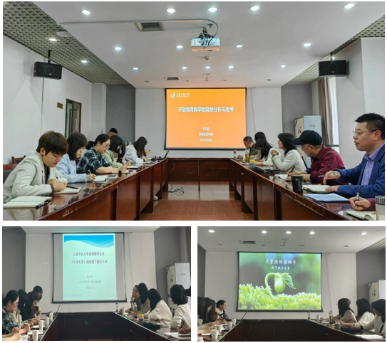下午的专项调研会从中午1点研讨至下午5点。环境生态学院院长干方群从学院开放教育概况、开放教学质量的管理及存在的问题和思考介绍了学院对教学质量管理工作的探索与实践;副院长秦品珠从学院教学的举措与成效、线下教学开展、毕业论文(设计)工作、专业建设指导委员会情况介绍了学院开放教育教学现状;学院教师代表孟小华、陈大庆老师介绍了所负责课程的基本情况、课程教学内容、30%线下教学安排和线下教学的实施情况。