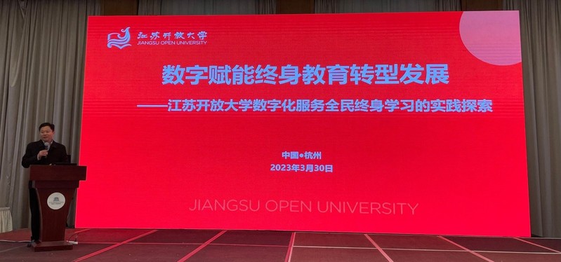 吴光林作了题为《数字赋能终身教育转型发展——江苏开放大学数字化服务全民终身学习的实践探索》的主旨发言。吴光林从数字赋能终身教育的价值、数字赋能终身教育的江苏实践、数字赋能终身教育的江苏实践成效等三个方面做了交流发言,分享了江苏开放大学数字赋能终身教育的经验,以教育信息化引领教育现代化,搭建数字化学习平台,打造面向各级各类学习需求的“教育超市”,推进“三类教育”资源迭代更新,初步形成数字化赋能全民终身学习的发展样态与模式。吴光林的报告受到了与会者的广泛关注和好评。