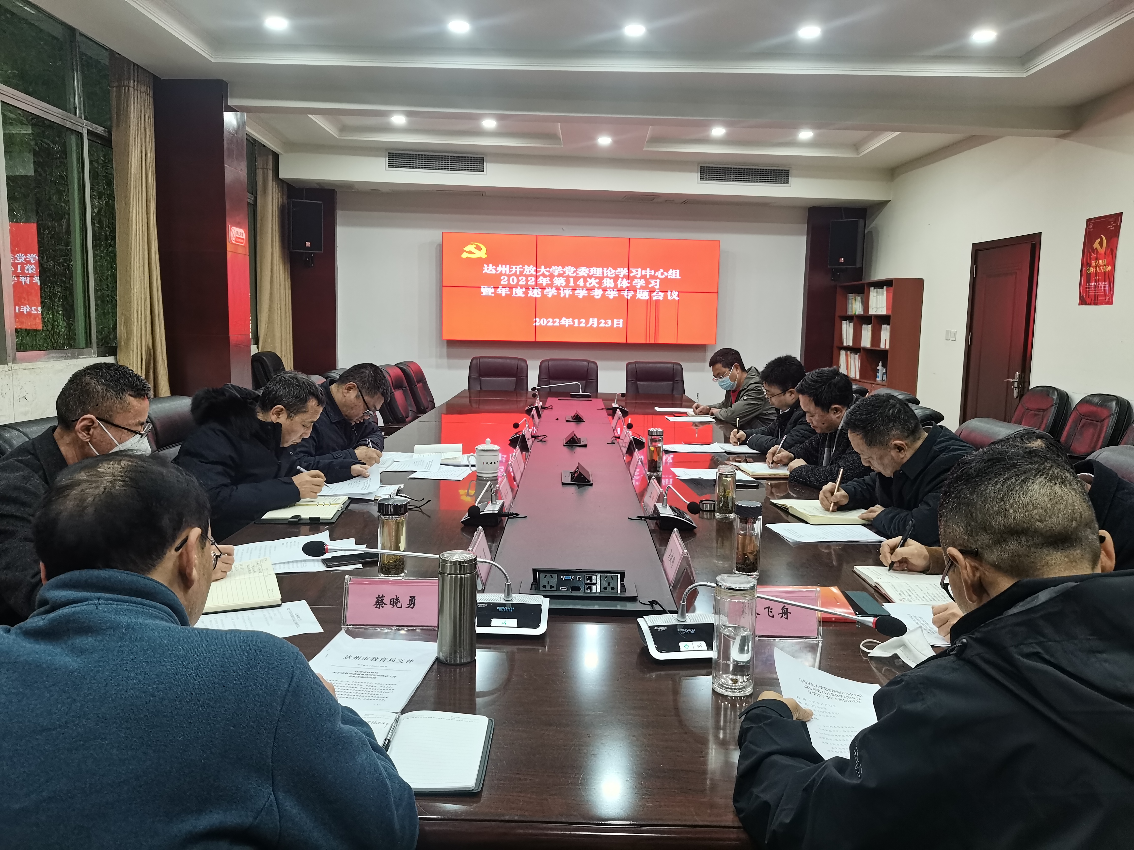 12月23日,达州开放大学党委书记蔡飞舟主持召开党委理论学习2022年第14次中心组学习暨年度述学评学考学专题会。党委副书记、校长蔡晓勇和全体中心组成员参加了会议。
