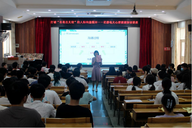 此次定点服务是根据花都学习中心的学生实际情况和工作需求,心理健康中心一校一策,制订了详细的工作方案。包括为学生开展心理健康筛查,了解学生的心理健康状况,及时发现并解决学生心理问题;心理健康中心国家二级咨询师孙婷婷老师为近200名学生开展题为《打破“有毒且无效”的人际沟通循环》的心理健康讲座,通过互动游戏和情景模拟的方法,帮助学生提高人际沟通的能力。