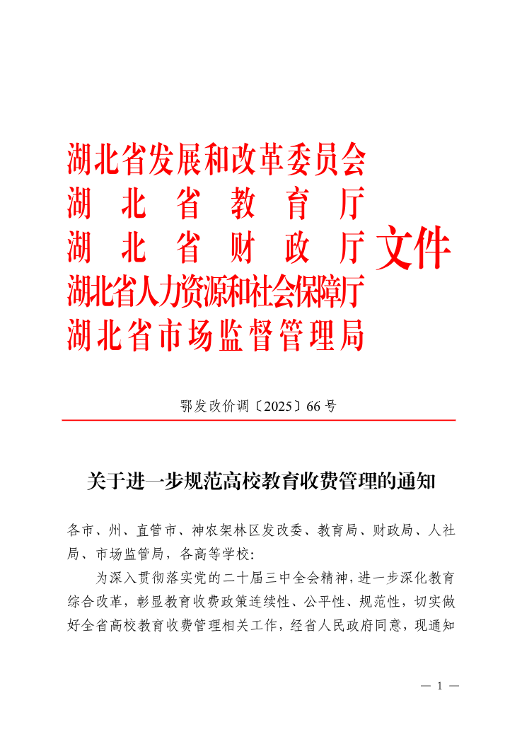 关于进一步规范高校教育收费管理的通知(鄂发改价调〔2025〕66号)
