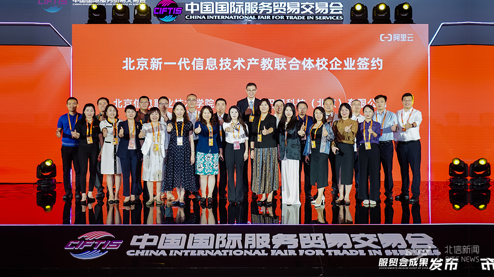 近日,2023年中国国际服务贸易交易会在北京举行。在服贸会线下签约现场,基于北京新一代信息技术产教联合体,北京信息职业技术学院与中关村科技园区朝阳园头部企业阿里巴巴科技(北京)有限公司正式签署发布。
