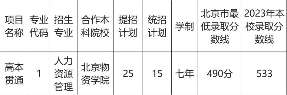 由入选“北京市特色高水平职业院校”的高职院校与本科高校联合培养。前5年在高职院校学习,后2年在本科高校学习。完成前5年学业且成绩合格者由高职院校颁发专科学历证书,完成全部学业且成绩合格者,由合作本科高校颁发本科学历证书(专升本)。具体情况以当年北京教育考试院公布的招生简章为准。